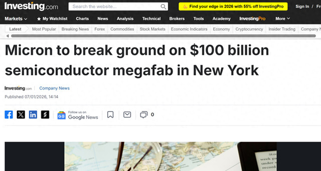 [环球网科技综合报道]1月8日消息掌柜配资,据Investing报道,全球存储巨头美光科技(Micron)近日宣布,其位于美国纽约州奥农达加县克莱镇的大型DRAM内存晶圆厂集群项目,将于当地时间2026年1月16日正式破土动工。该项目总投资高达1000亿美元,创下纽约州有史以来单笔私人投资的最大规模纪录。